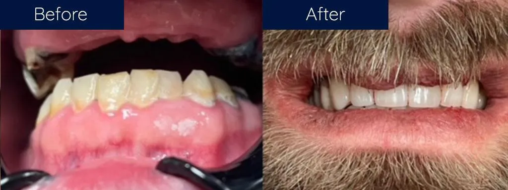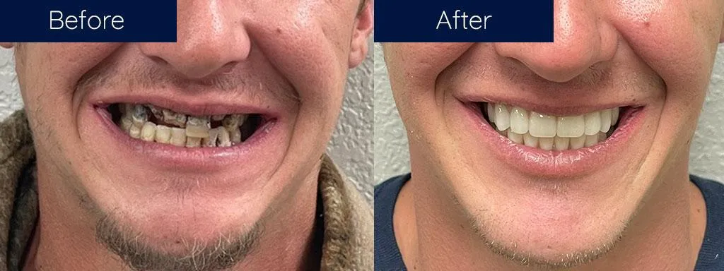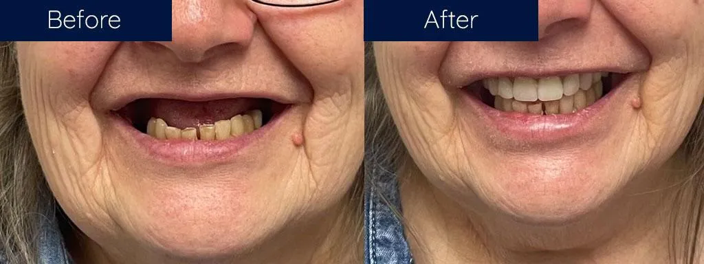 If you're missing several teeth or need extractions, a permanent denture solution may be a great option to restore your smile. With implant-supported dentures, we place 4-6 implants and then permanently fix a full arch of 3D-printed teeth to those implants, allowing you to chew, eat, and talk with ease again.
